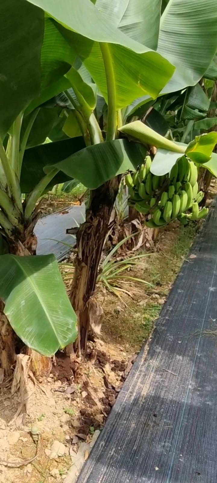 SoliDrip non-electric sensor-based irrigation works for a plantation of bananas. The result is very low water usage and high output of bananas. This is achieved with regular feeding of spent coffee grounds and natural protein-based fertilizers.